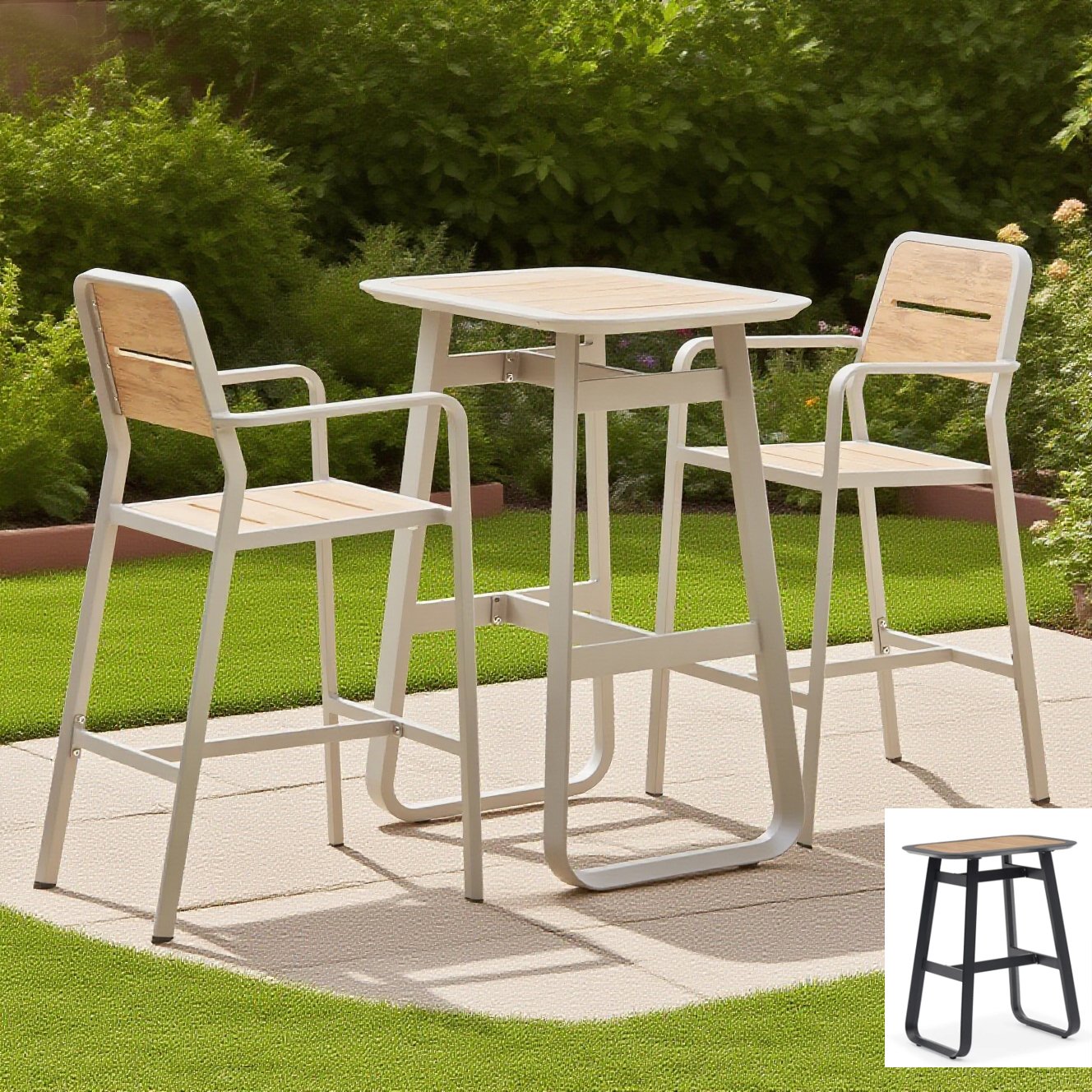 - Designed with style and durability in mind, the 3-piece bar table set includes two chairs and a table.
