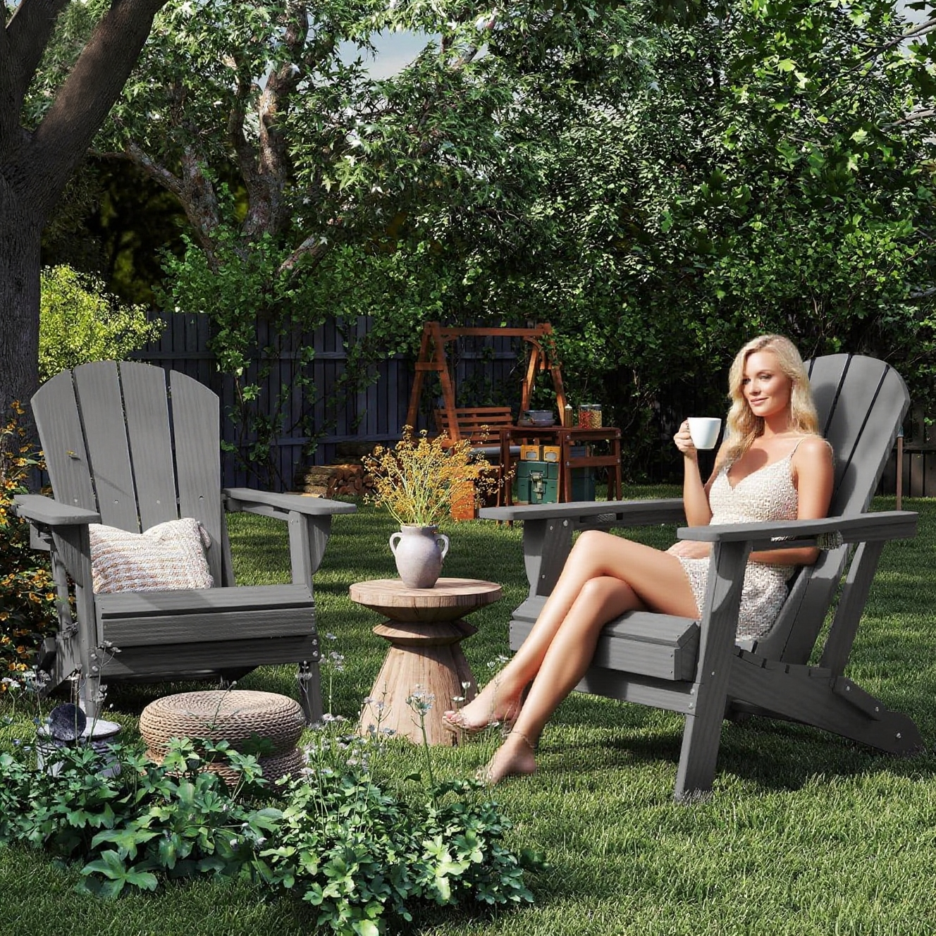 Experience ultimate outdoor comfort with our All-Weather Outdoor Patio Foldable Adirondack Chair. Crafted from rust-proof 304 stainless bolts and eco-friendly HDPE wood, this heavy-duty chair is built to withstand the elements year-round. Featuring a convenient foldable design for easy storage, an adjustable backrest for personalized comfort, and an integrated cup holder for added convenience. Perfect for enhancing your garden, patio, backyard, or poolside oasis. Upgrade your outdoor living space with this durable, versatile, and maintenance-free relaxation solution designed for long-lasting enjoyment.